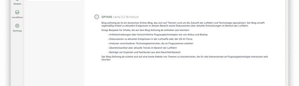 Nochmals abschließend gpt4all auf dem Standrechner installiert und es läuft soweit. Dann kann ich ja auch ein mächtigeres Modell probieren.