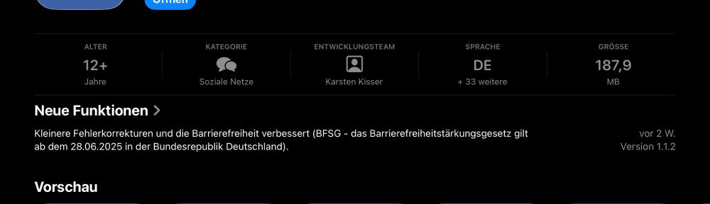 Der iPadOS App Store mit der Blog App.