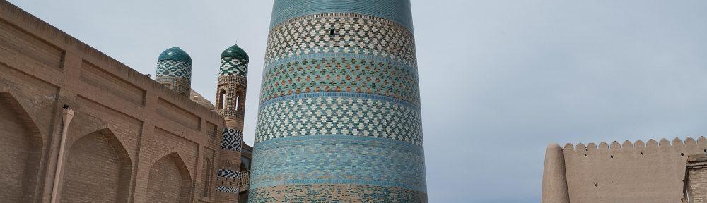 Chiwa in Usbekistan ist der Ort mit bunten Kuppeln der ehemaligen Koranschulen und bunten Kacheln an den Wänden.