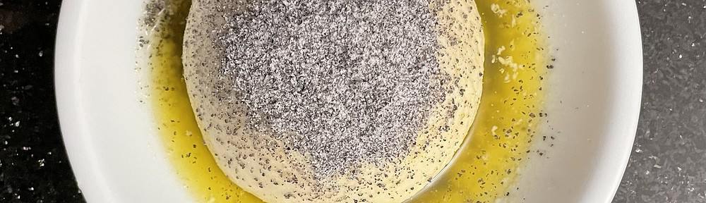 Fertiger Germknödel mit Butter, Puderzucker und Mohn.