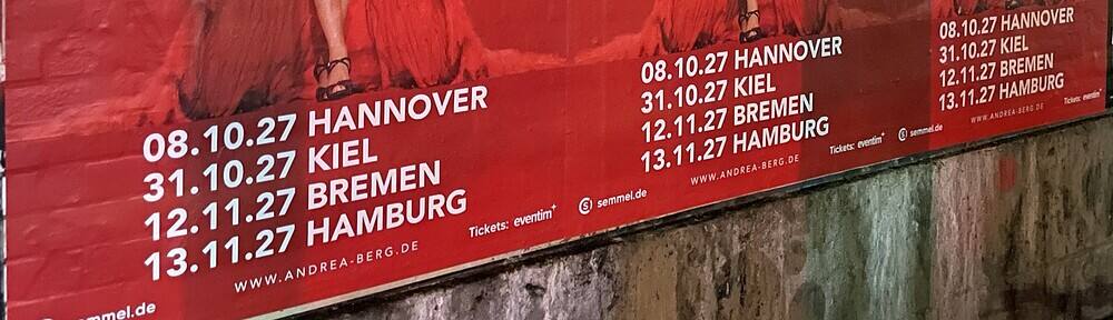 Rote Andrea Berg Konzertreklame für Oktober 2027.