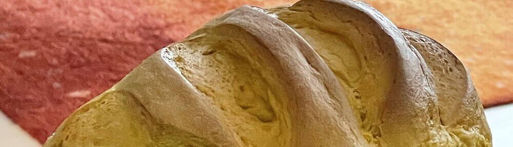 Angeschnittener gelber Kürbisstuten auf Holzbrett.