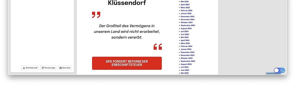 Blogwebseite im Darkmode mit Includia-Barrierefreiheitswert von 99.