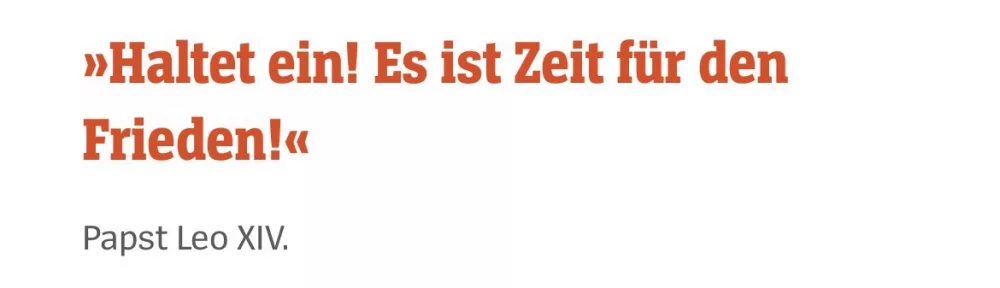 Papst Leo XIV.: »Haltet ein! Es ist Zeit für den Frieden!«