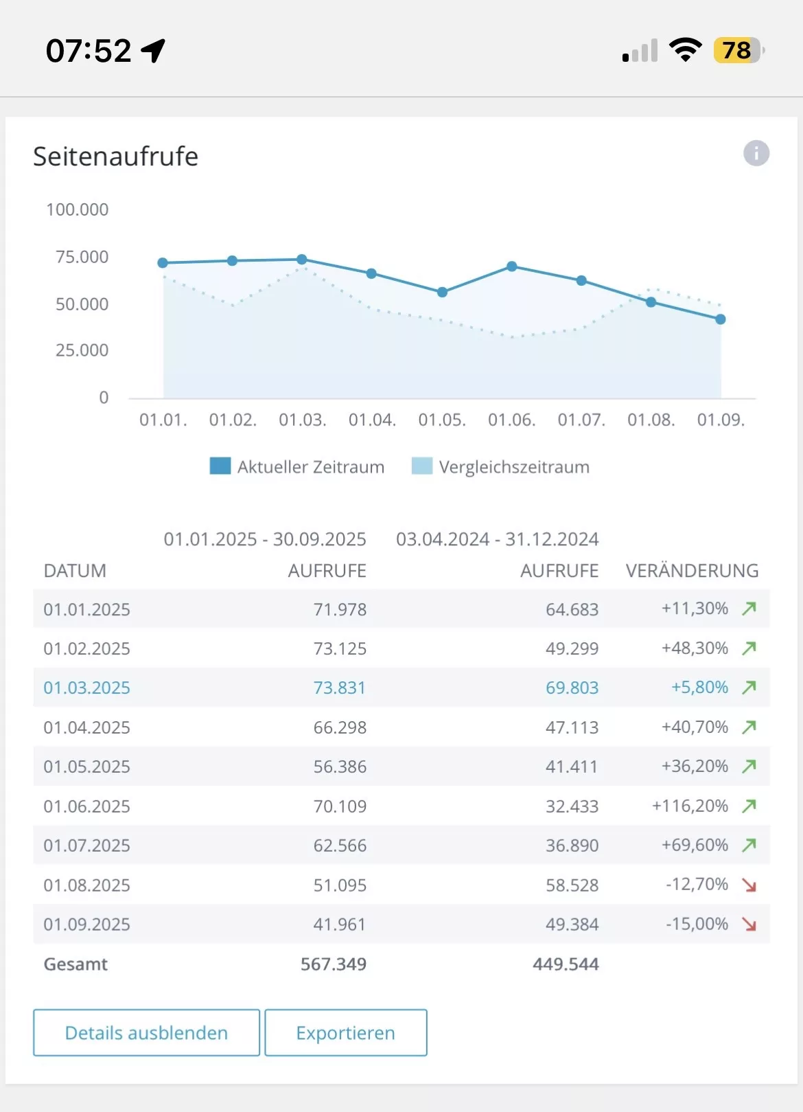 Nun sind 9 Monate des Jahres 2025 vorbei und es wird wieder Zeit für etwas Statistikdaten. Hochtrabend wird auch gerne von Mediadaten gesprochen. Da das Blog aber werbefrei war, ist und bleibt, sind jene Daten eben nur fürs eigene Ego gut.